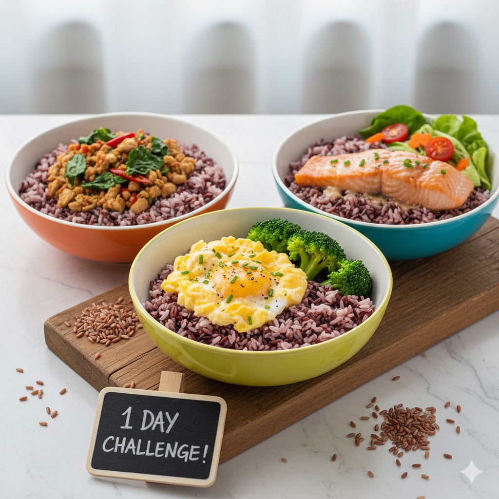 เราขอเสนอ "1 Day Challenge: แผนกินข้าวกล้อง 5 กษัตริย์ทั้งวัน" นี่ไม่ใช่การอดอาหาร แต่เป็นการเปลี่ยนมาใช้คาร์โบไฮเดรตเชิงซ้อนคุณภาพสูงแทนคาร์บจากแป้งขาวหรือน้ำตาล! ด้วยคุณสมบัติ ไฟเบอร์สูง และ ดัชนีน้ำตาลต่ำ (Low GI) ของ ข้าวกล้อง 5 กษัตริย์ ที่มีครบทั้งข้าวกล้องหอมมะลิ ข้าวไรซ์เบอร์รี่ ข้าวทับทิม ฯลฯ